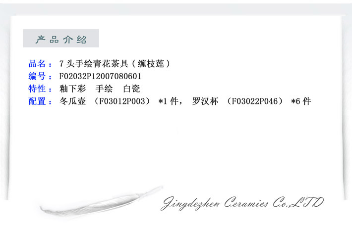7头手绘青花茶具(缠枝莲)