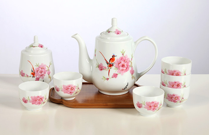8头手绘茶具(水点桃花)