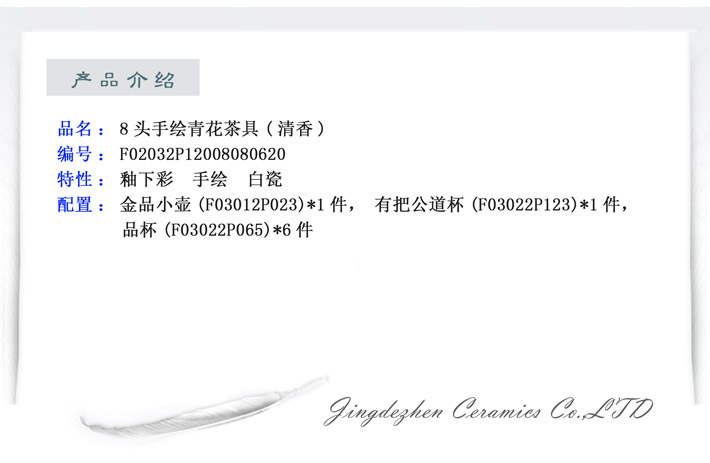 8头手绘青花茶具(清香)