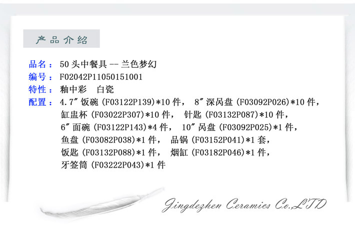 50头中餐具--兰色梦幻