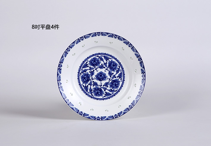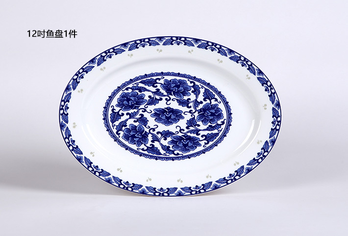56头青花玲珑花卉中餐具
