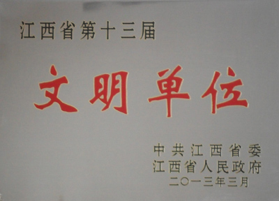 克日,,,,,省委、省政府下发转达,,,,,表扬江西省第十三届“文明单位”。。。。。。公司榜上著名。。。。。。这是公司一连三届荣获省级“文明单位”殊荣。。。。。。