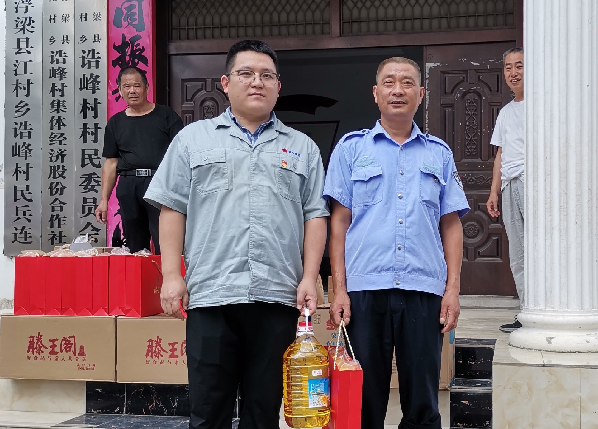 集团班子成员和帮扶干部辨别上户慰问了帮扶工具。。。。。。