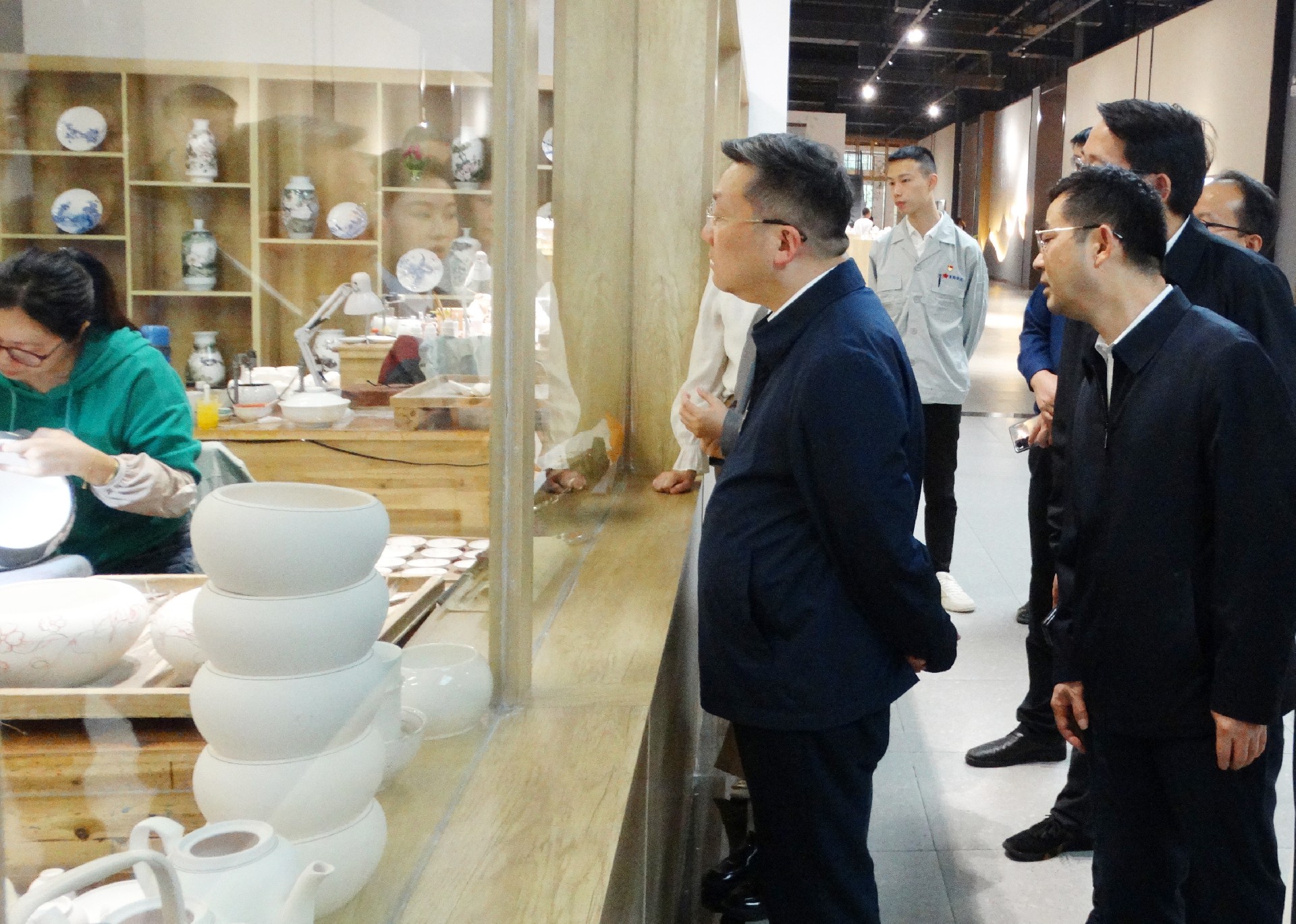 在绘画展示窗口,,,,,,,工人们正全神贯注地绘制碗、盘等器皿。。。。。。陈澎饶有兴致地寓目,,,,,,,并连连赞美她们的武艺,,,,,,,胡轶随即说道,,,,,,,我们集团对专业手艺人才很是重视,,,,,,,还相继出台了一系列激励步伐,,,,,,,陈澎听后给予了高度一定和赞美。。。。。。
