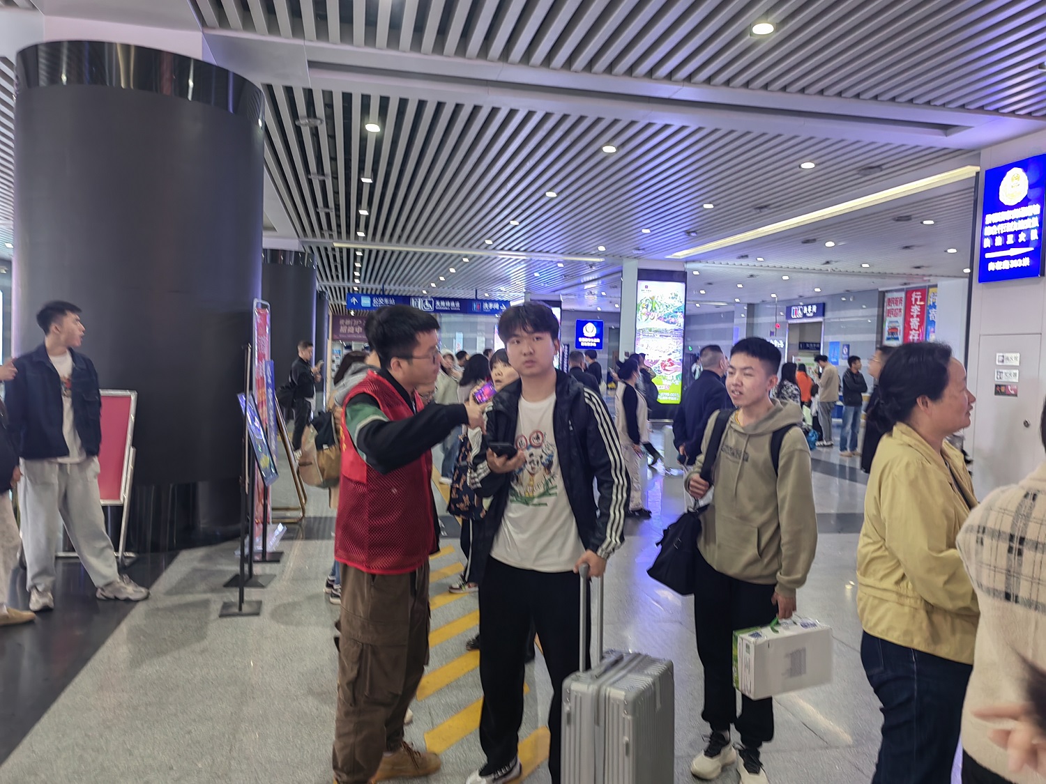 在各效劳站点,,,,,,,自愿者们一会儿化身导游,,,,,,,一会儿化身美食家,,,,,,,一会儿化身行李侠……为游客提供周密的效劳,,,,,,,游客们纷纷点赞自愿者们热心、舒心、暖心!