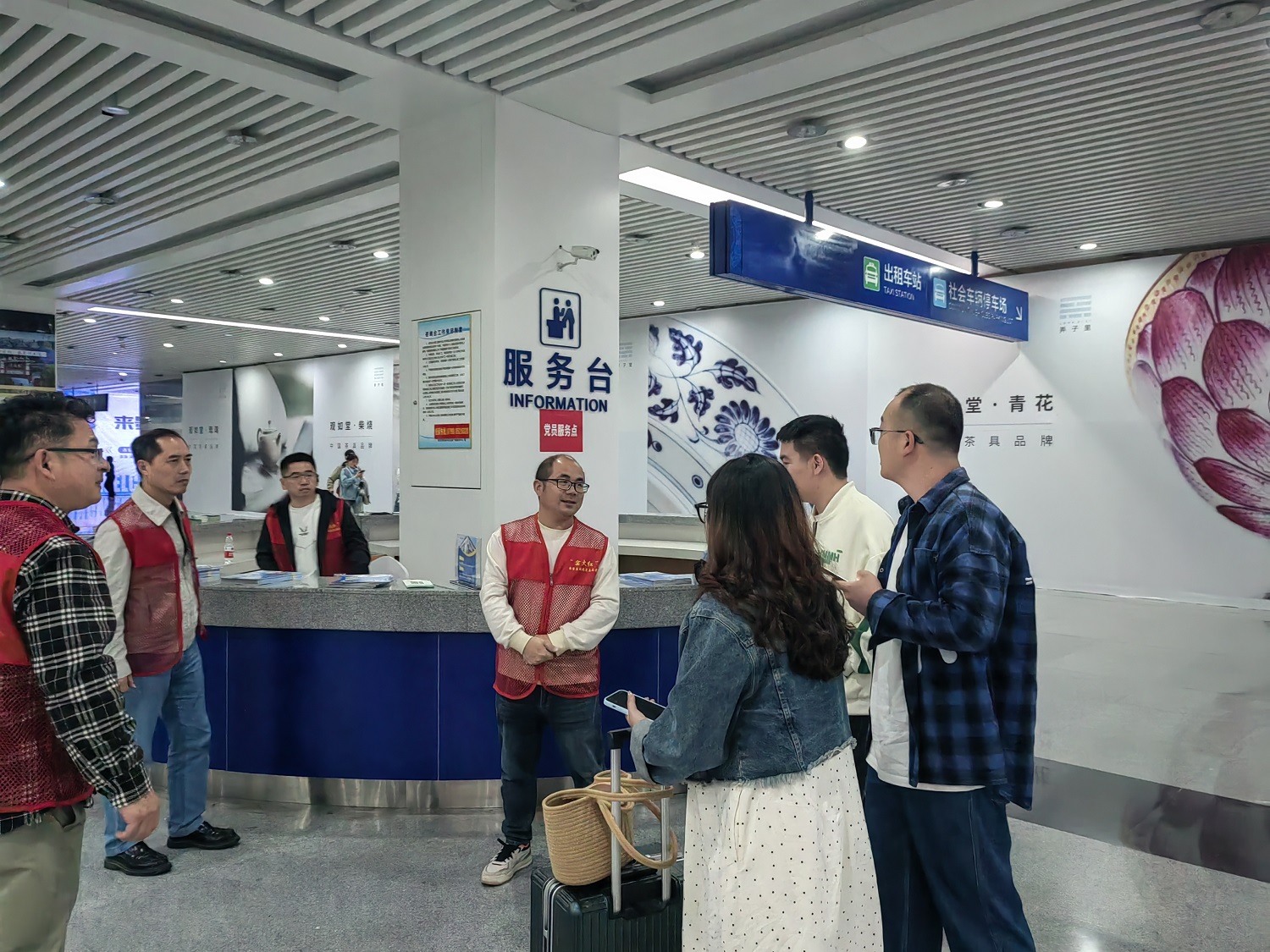 4月30日,,,,,,,五一假期前夕,,,,,,,景陶集团组织70多名党员自愿者加入市“窑火红”党员自愿效劳运动。。。。。。。他们身穿红马甲,,,,,,,忙碌穿梭在景德镇北站南广场,,,,,,,北广场和罗家飞机场的游客中,,,,,,,为来景游客指引蹊径,,,,,,,提行李,,,,,,,推介美食美景美宿,,,,,,,指导车辆有序停放等,,,,,,,送上热忱暖心的效劳,,,,,,,流动的红马甲成为一道靓丽的“景物线"。。。。。。。